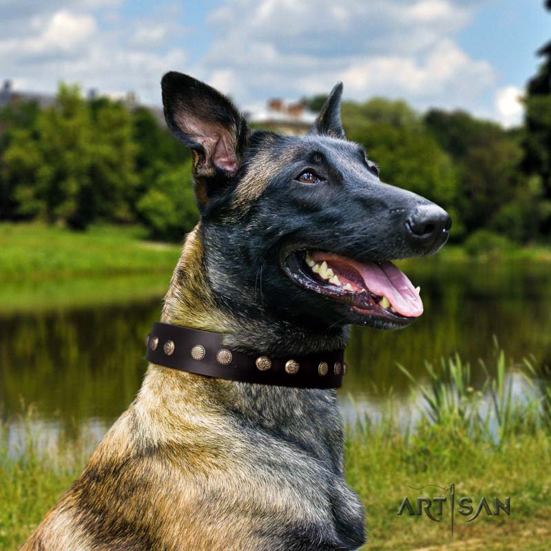 Belgian Malinois everyday walking genuine leather collar for your stylish dog