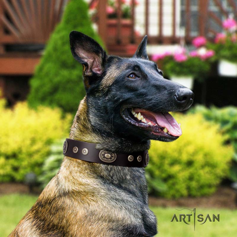 Are you crazy about stylish collars? Allow your favourite Belgian Malinois take joy in wearing such collars on! Purchase this finest quality leather dog collar with adornments from FDT Artisan. This accessory is created for those who just is fond of fashion style. In this exquisite collar, your Belgian Malinois will have more stylish, but impressive look. Your cute Belgian Malinois will get the finest treatment when wearing this FDT Artisan collar. Genuine leather is hypoallergenic and totally eco-friendly.